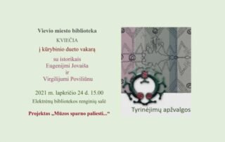 Elektrėnų savivaldybės viešosios bibliotekos Vievio miesto filialas tęsia 2021 metų rudenį pradėtą vykdyti projektą „Mūzos sparno paliesti…“ ir lapkričio 24 dieną 15 valandą, kviečia į Elektrėnų ...